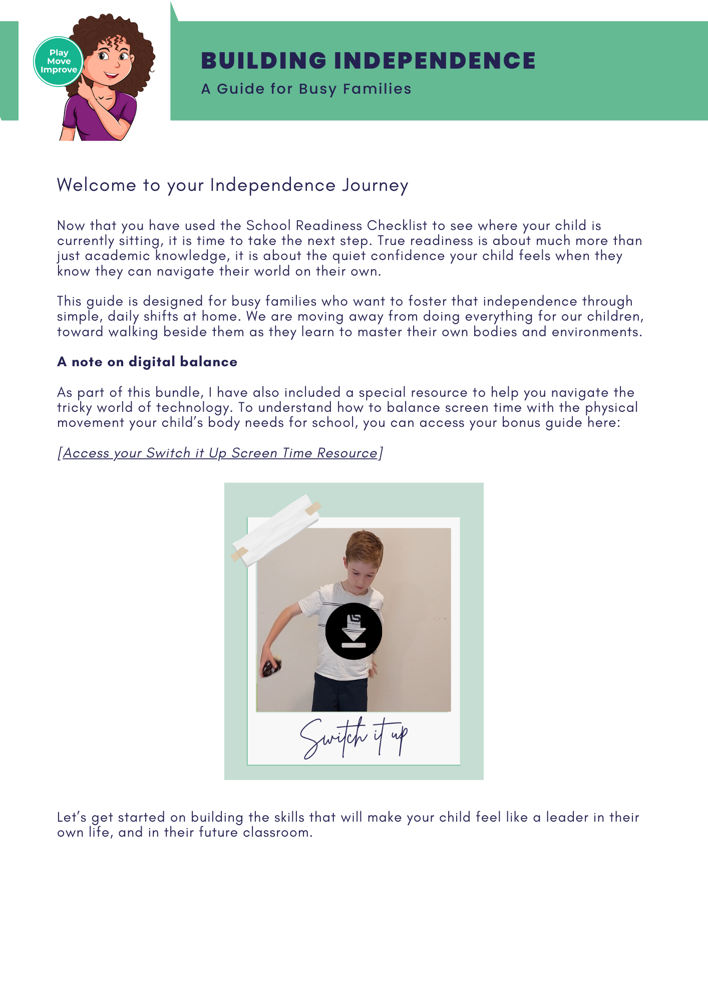 The Independence Guide: A step by step roadmap for busy families to foster capability at home. Learn simple shifts to move from doing everything for your child to walking beside them as they master their own routines.
